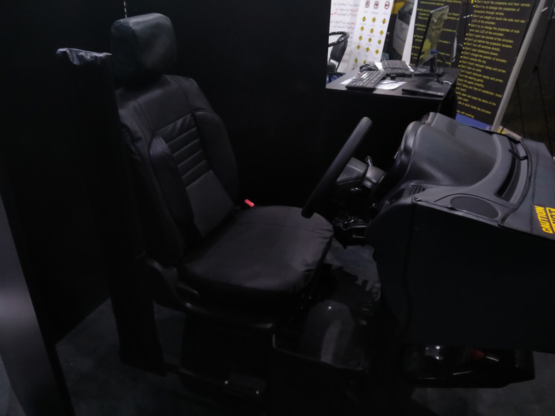 AAA Technologies Console based LTV/HTV driving simulator system consists of an open cabin with the adjustable driver seat and actual vehicle dashboard along with